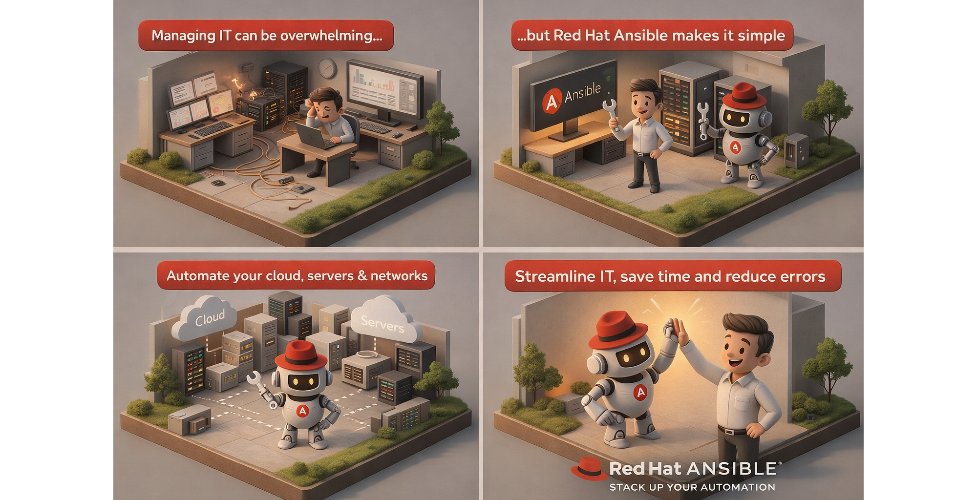 Redhat ANSIBLE のcustamizeを業務受託するという広告を漫画で作成 2000×1